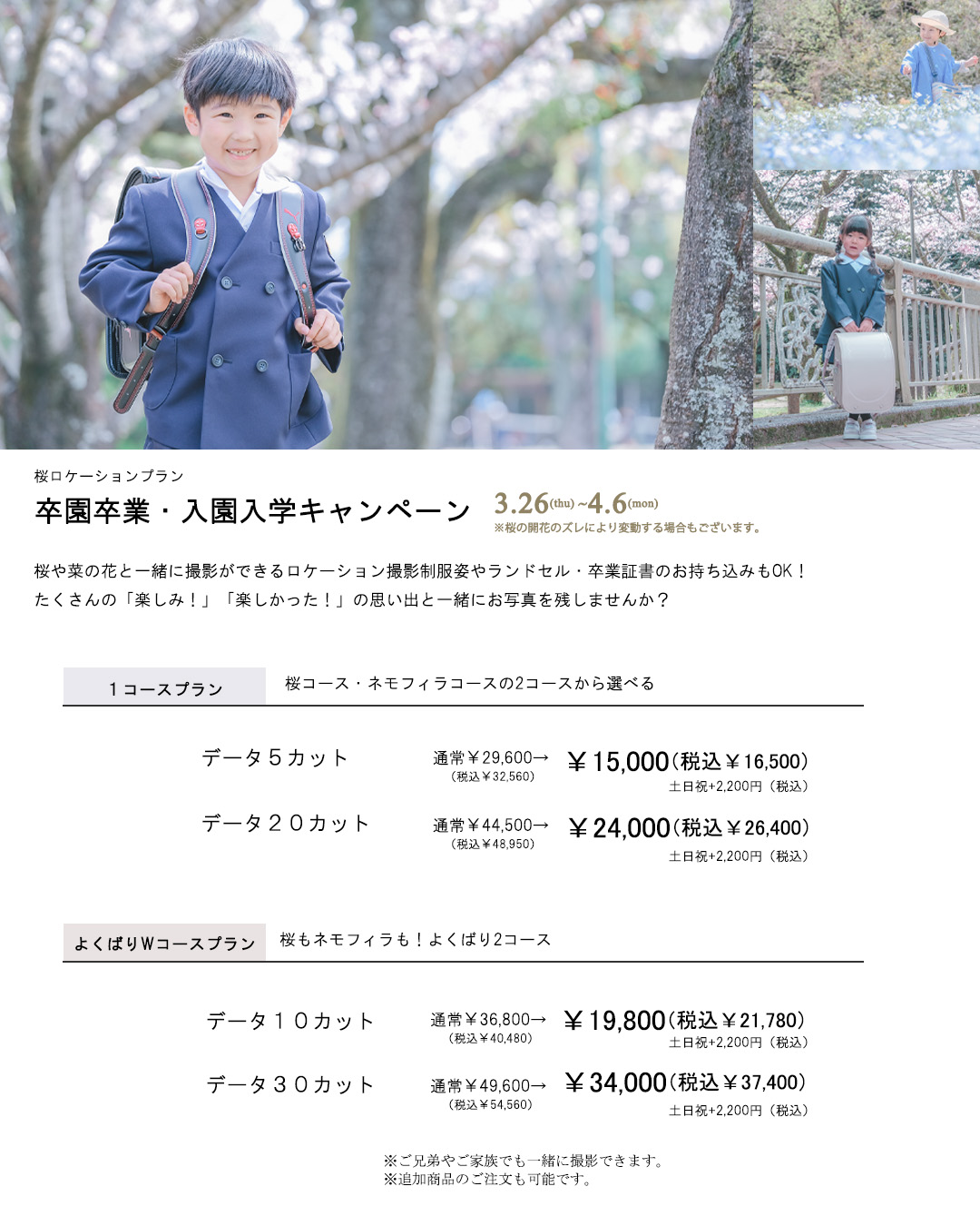 卒園卒業・入園入学の撮影プランを今年も開催!