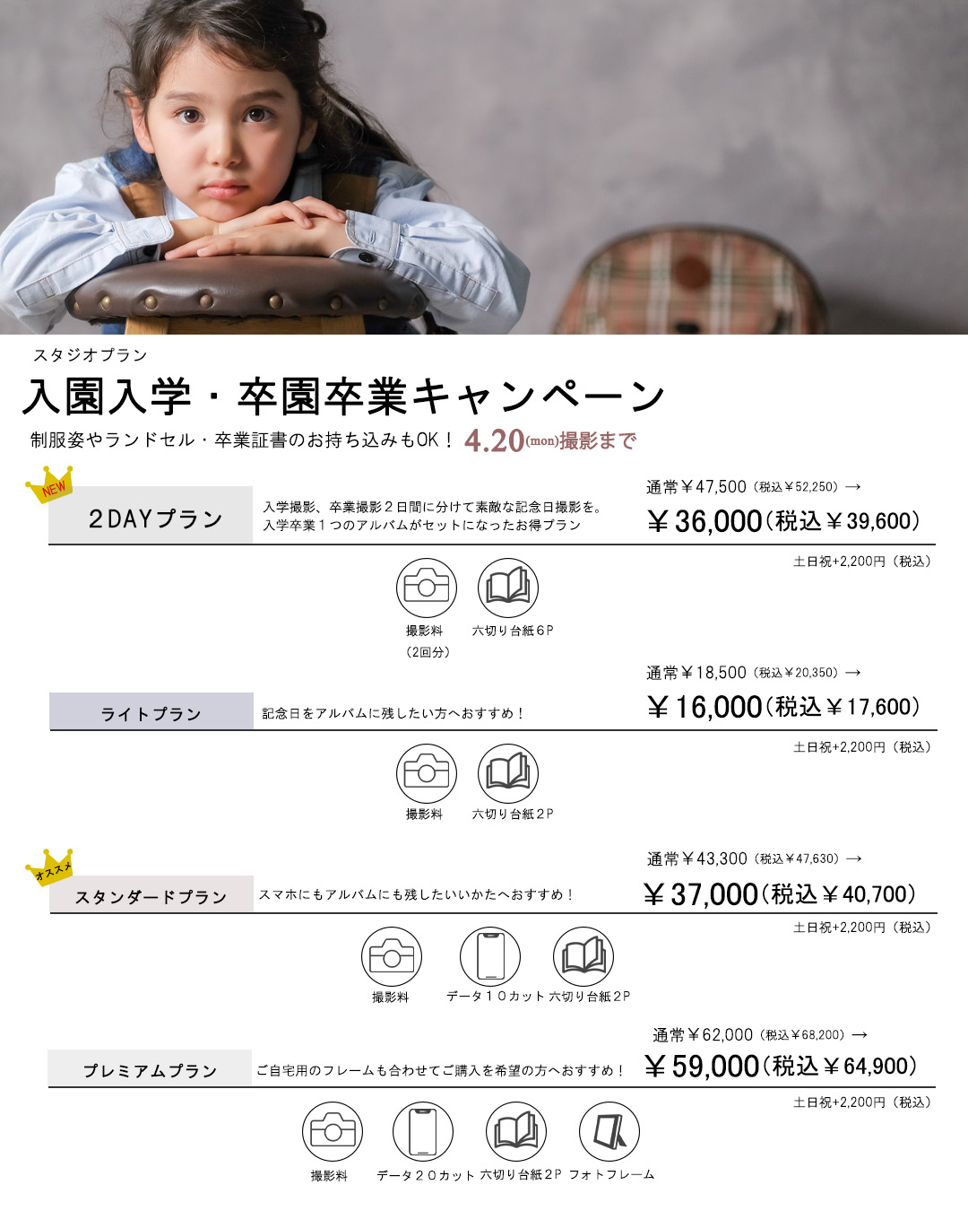 (卒園卒業、入園入学の撮影内容も合わせてお教えください)